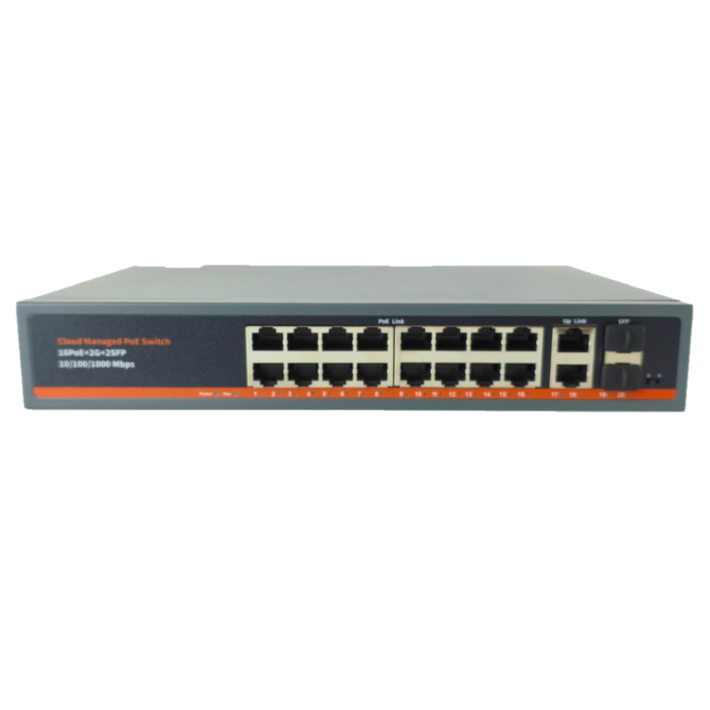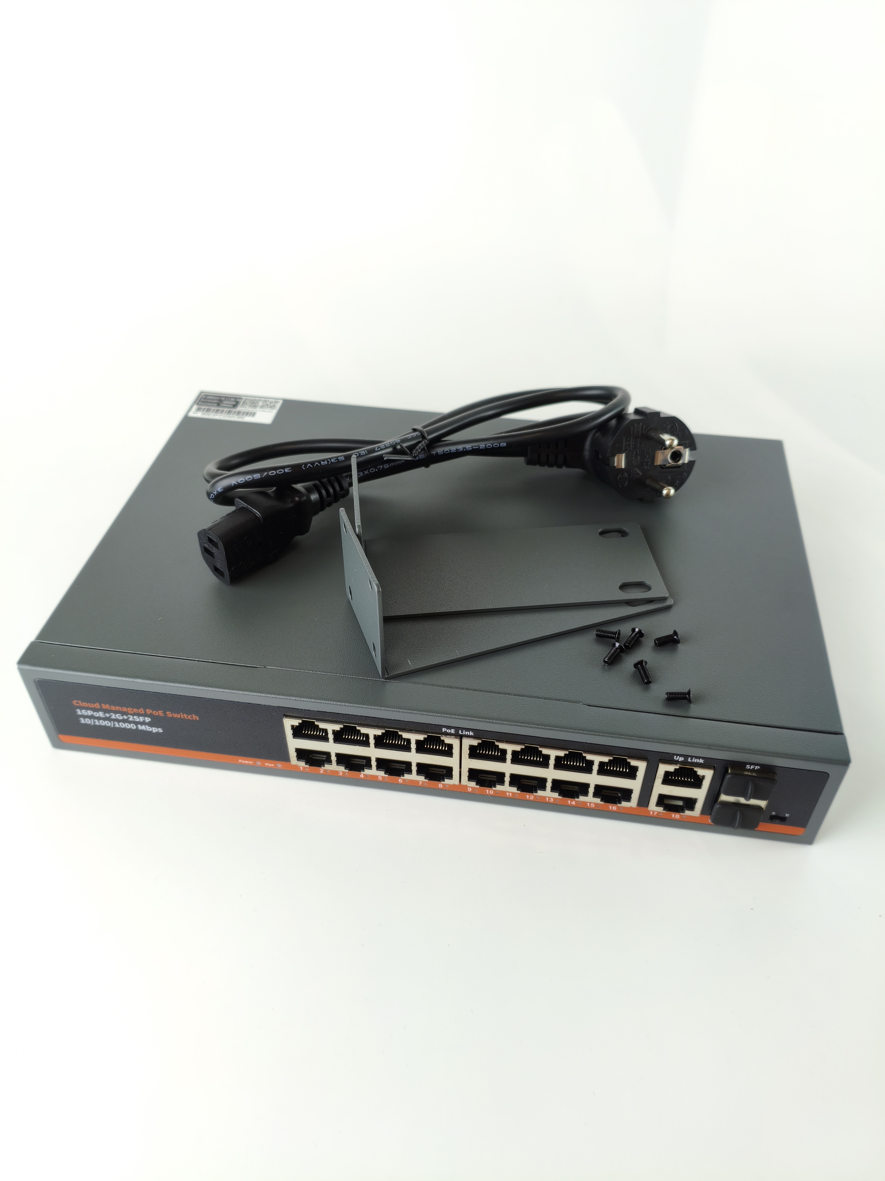 Порты: 16 x Gigabit PoE (до 30Вт на порт), 2 x Gigabit Uplink, 2 x SFP