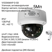Антивандальная IP камера XVI VI5306MAP-D-SD, 5Мп, моторизованный.объектив, Dual Led, 12В+PoE, микроф, динамик, Dual Led подсветка